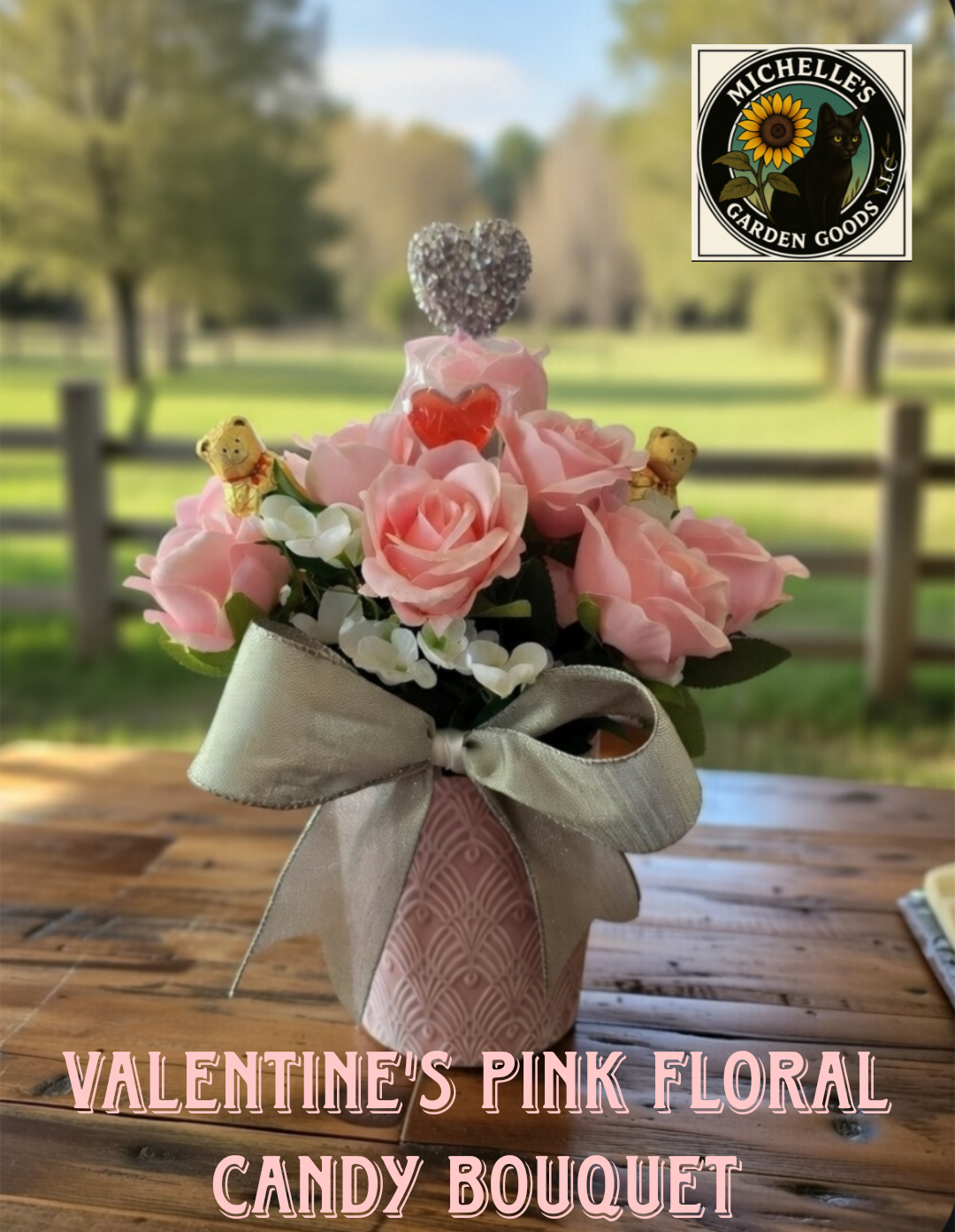 Sweeten someone's Valentine's Day with this charming pink floral candy bouquet!